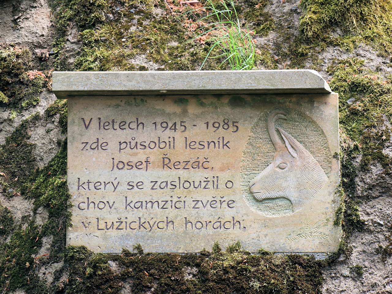 Skalka s pamětní deskou u cesty do sedla.