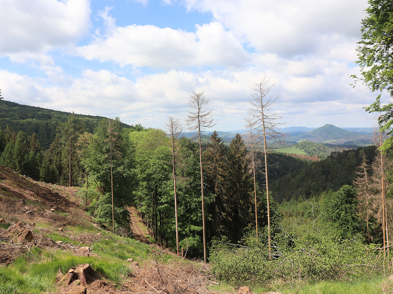Pohled z odlesněného svahu Bukoviny k Růžovskému vrchu.
